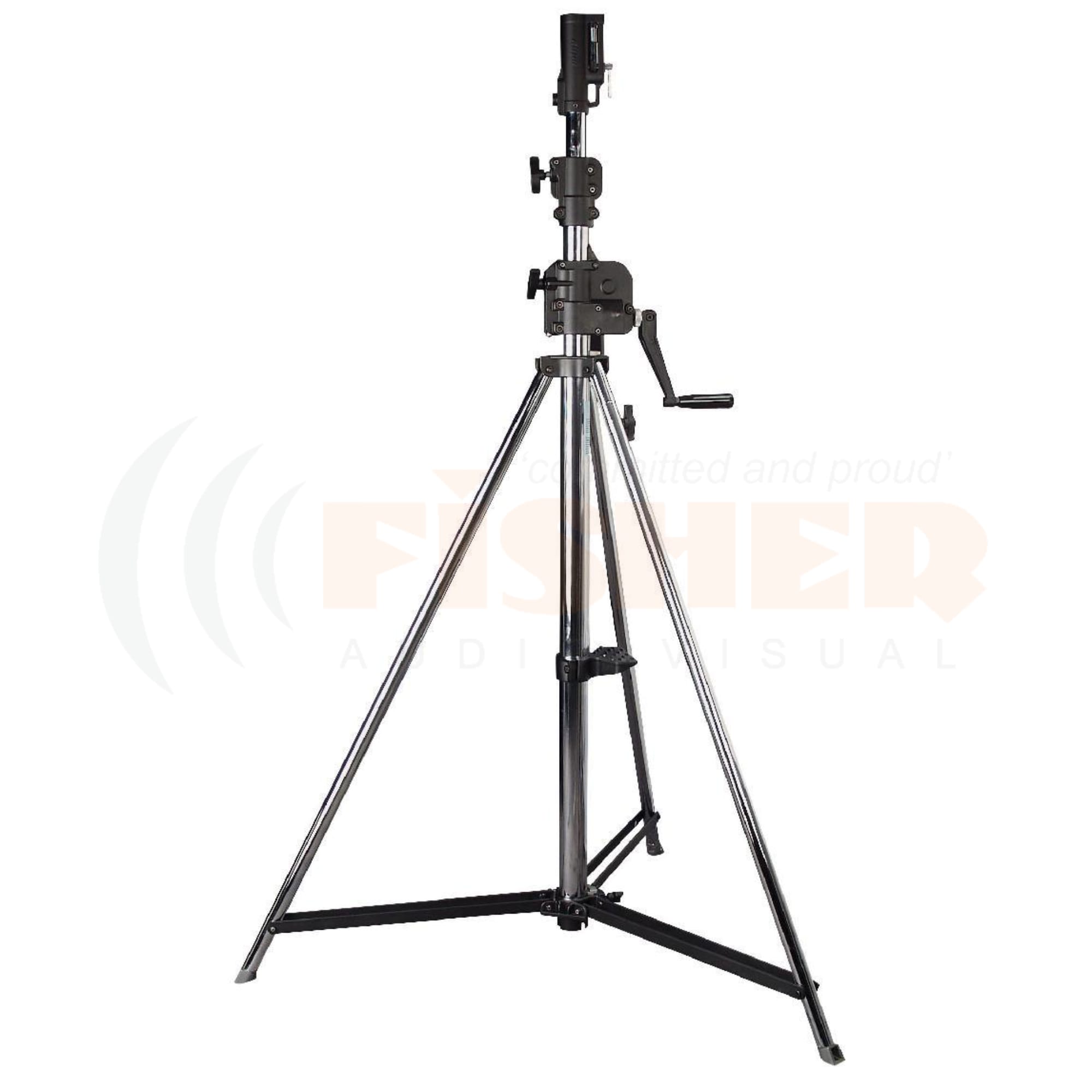 The Manfrotto 087NW is a heavy duty lighting stand with a geared column and one levelling leg. Its two risers extend simultaneously to 4.4cm per handle turn. A safety cable ensures simultaneous retrieval of all sections.